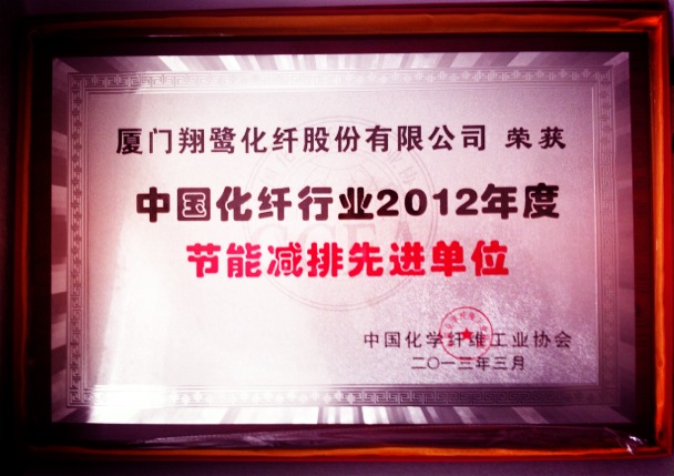 翔鷺化纖榮獲“中國化纖行業(yè)2012年度節(jié)能減排先進單位”稱號