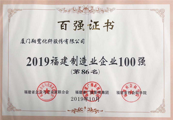 恭賀廈門翔鷺化纖股份有限公司被福建省企業(yè)與企業(yè)家聯(lián)合會、福建省廣播影視集團、福建省社會科學(xué)院評為“2019福建制造業(yè)企業(yè)100強”第86名。