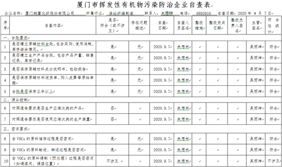廈門市揮發(fā)性有機(jī)物污染防治企業(yè)自查表(2020年第二季度)